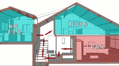 史老師在改造的過(guò)程中,運(yùn)用「二層變四層」的空間錯(cuò)層解決思路,充分利用了小丁當(dāng)一家“坐臥行駛”的具體需求,把原先的兩層空間擴(kuò)展成了四層空間。在這四層空間中,魔法般的變出了10大功能區(qū)、近100個(gè)儲(chǔ)藏空間,不僅滿(mǎn)足了四代人分別擁有自己獨(dú)立臥室的需要,還設(shè)計(jì)了獨(dú)立的客廳、廚房,衛(wèi)生間從原來(lái)與廚房共用改造成了獨(dú)立衛(wèi)生間,而且是上下兩個(gè)獨(dú)立的衛(wèi)浴空間,充分照顧到四代人不同的使用需求。