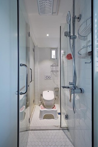 特別值得一提的是第二層的衛(wèi)生間,經(jīng)過(guò)巧妙的設(shè)計(jì),分離出廚房、淋浴間、廁所間三大巧妙空間,再也不會(huì)出現(xiàn)做飯和上廁所同時(shí)進(jìn)行的尷尬,同時(shí)做到干濕分離并區(qū)隔出獨(dú)立的空間。結(jié)合大人、小孩衛(wèi)浴空間的不同需求,靈活開(kāi)關(guān)的隔離門(mén)、干濕分離的設(shè)計(jì)細(xì)節(jié),以及悉心選擇的產(chǎn)品,強(qiáng)大功能向觀(guān)眾詮釋著設(shè)計(jì)的力量和周全的考量。