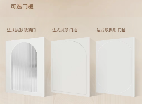 在造型上,恒潔繁花系列同樣兼具美學感與實用性。它提供豐富的門板樣式:法式拱形+長虹玻璃門、法式拱形門抽、法式雙拱門抽等,多樣的造型選項,既能滿足不同用戶的審美偏好,也能根據(jù)衛(wèi)生間空間大小靈活適配,讓“好看”與“好用”不再沖突。